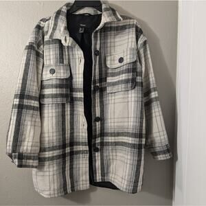 flannel, gray, grey, plaid, button down, winter, shacket, jacket,