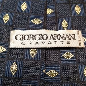 Giorgio Armani tie, 100% silk. Blue, grey and gold pattern. Made in Italy. Excellent condition.