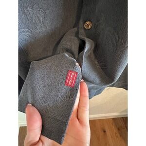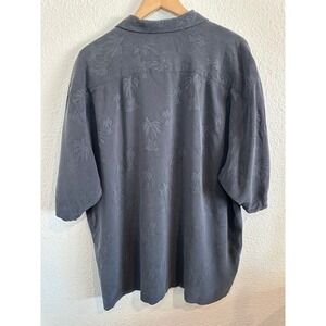 Tommy Bahama Mens XL Silk Short Sleeve Button Up Shirt Palm Tree Print Gry Relax