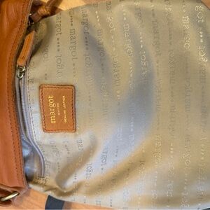 Margot New York Split Pocket Leather Crossbody in Cognac color