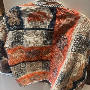 Embrace a bohemian vibe with this vibrant women's jacket. Featuring a rich red base with colorful fringe detailing, this piece adds a unique touch to any outfit. Perfect for making a statement. All sales final