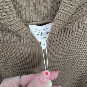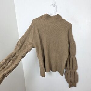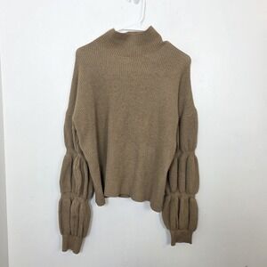 Bohme Tan Ribbed Mock Neck Bubble Sleeve Cute Neutral Helena Sweater Size M