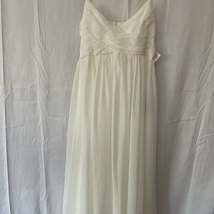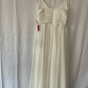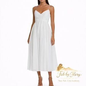 Ieena for Mac Duggal White Faux Wrap Sleeveless Flowy Midi Dress