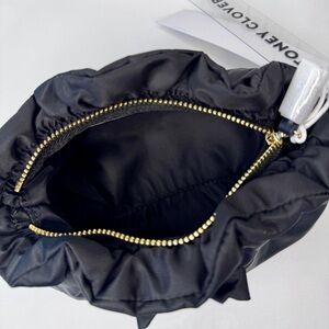 Iconic Stoney Clover Lane bow bag in sleek nylon with signature ruffle detailing and gold hardware. This cult-favorite pouch is all over TikTok for a reason—lightweight, luxe, and effortlessly chic.