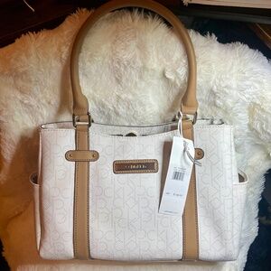Contrast white stitching and silver snap closure