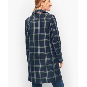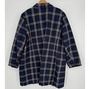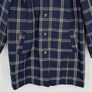 Talbots Plaid Mac Coat Jacket Size 3X Navy Pink Yellow A-Line Classic Outerwear