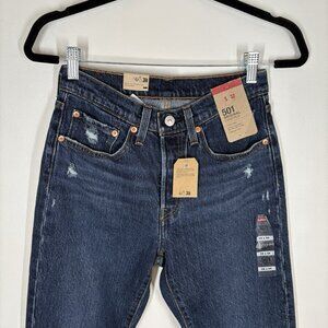 Levis Women 26 Blue Denim Button Fly High Rise 501 Original Cropped Jeans NWT