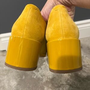 Chic sunflower yellow suede shoes by COS. Ideal for casual wear. Comfortable and stylish.