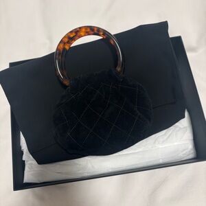 Chic Black Velvet Handbag with Tortoise Shell Handle