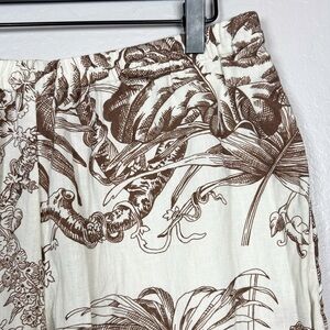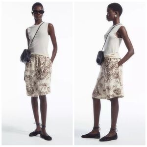 COS Women’s Size 8 Cream & Brown Botanical Print Pull-On Longline Linen Shorts