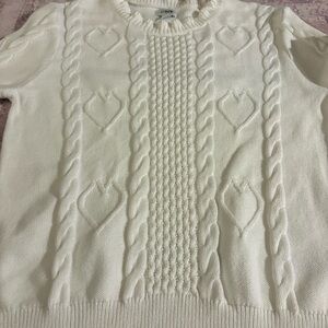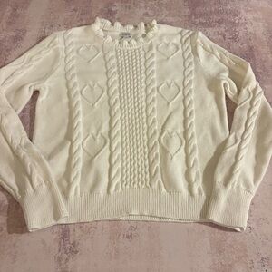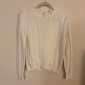 J. Crew Cable-knit hearts crewneck sweater 100% Cotton white size medium