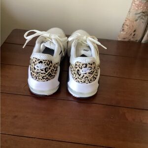 Chic Nike sneakers with leopard print details. Features a bold black swoosh. Perfect for everyday wear.