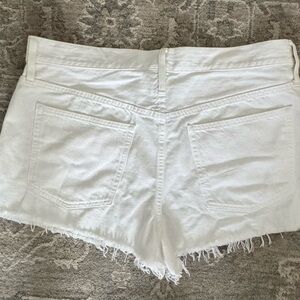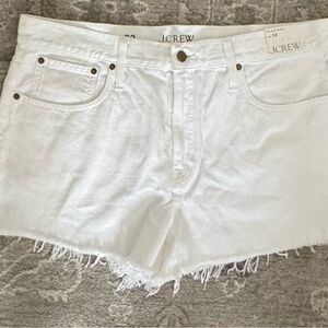 Chic white jean shorts with frayed hem. Ideal for casual wear. Classic J. Crew style.
