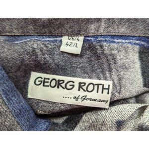 Vintage 90s Shirt Georg Roth Germany Blue Gray Retro Print Men's Size 42 L