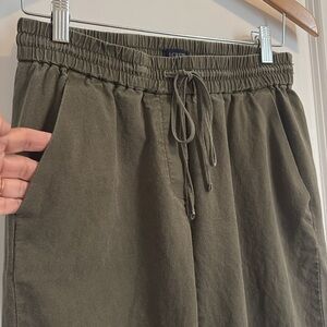 J Crew Factory Linen Cotton Blend Drawstring Pants Army Green Size 2