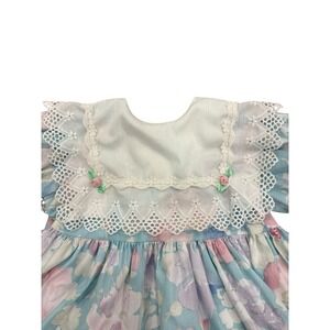 Vtg Girls Toddler Floral Lace Dress 3t Puff Sleeve Pastel Cottagecore Praire