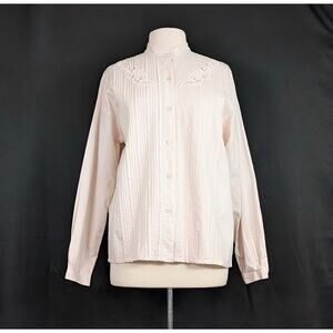 Vintage 90s Blouse Light Pink Pintuck Pleats Top Shirt Cotton Misses Size M