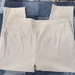 Chic gray pants with white stripes. Versatile and stylish. Stretchy, super comfortable and looks great for business casual functions. Worn handful of times. Time to rotate the closet.