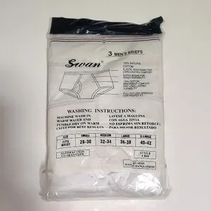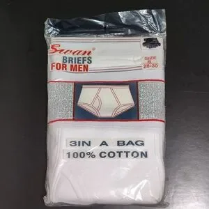 VINTAGE Swan Men's White Briefs - 3 Pack Sz 28-30 100% Cotton