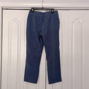 Karen Scott sport blue “denim” color stretch pants with elastic waist band and draw string. Like new condition. Size medium. Side pockets.