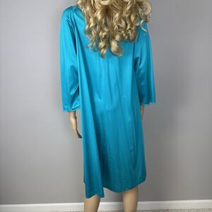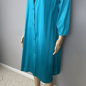 Vintage Vanity Fair Small Button Robe Housecoat Teal Nylon Antron III Pocket