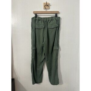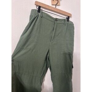 Anthropologie Pilcro Linen Blend Green Cargo Utility Pull On Pants Med Wide Leg