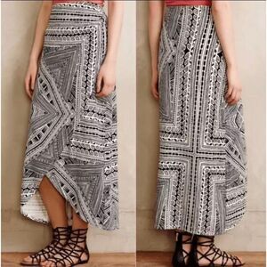 Anthropologie Maeve Bombora Black White Printed Faux Wrap Maxi Skirt L