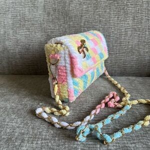 Handmade Plush Yarn Crossbody Bag – Pastel Multicolor