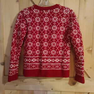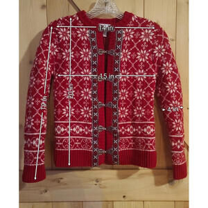 VTG Petite Sophisticate Merino Wool Red White Nordic Print Cardigan Women Small