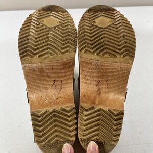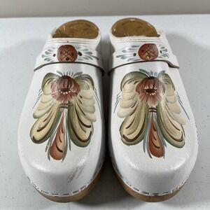 SKANE TOFFELN Sweden Floral Painted Leather Wood Clogs Shoes Womens Size 41