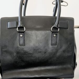 This Hamilton tote is designed to turn heads and is in fabulous used condition. minimal wear. It has been crafted from leather in a black shade and decorated with an MK padlock on the front with a working key. The bag has two handles, a shoulder strap, and a spacious fabric interior. making it a complete set. The interior is lined in a white MK Design fabric.