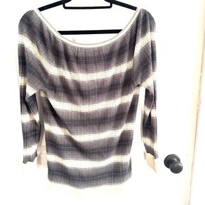 Marc Jacobs Cream Grey Ombre Cardigan Sweater Top NWT S. Style "Ombre Stripe Cardigan Sweater". It is a smokey gray color that Marc Jacobs is calling "shell grey multi". The sweater is a cardigan style. See photo for one minor snag.
