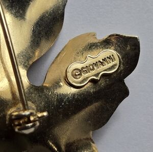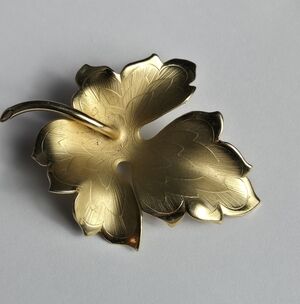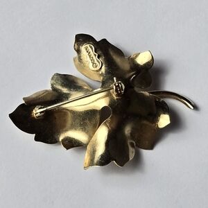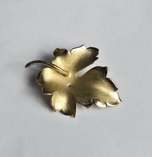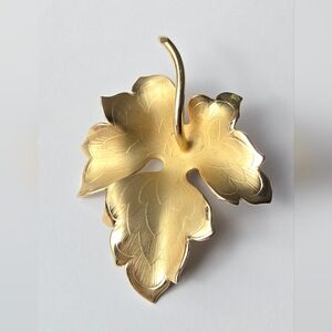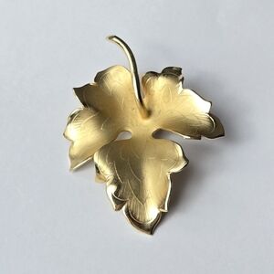 Elegant Giovanni gold leaf brooch with intricate detailing. Perfect for adding a touch of nature-inspired elegance to any outfit.