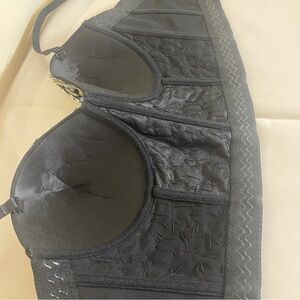 - Design: AB rhinestone embellished, boning structure, cropped length, padded push-up cups for support and a sweetheart neckline.