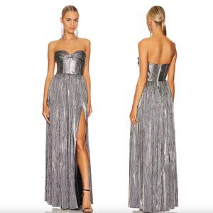 Bronx and Banco Florence Gown in Silver Metallic Strapless Formal Maxi Dress