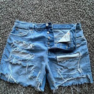 Y2K Blue Free People Relaxed Fit Denim Shorts, Button Up Fly, Women's Size 29