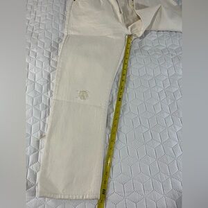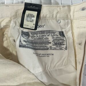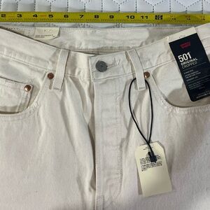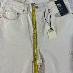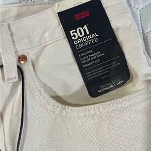 Levi's 501 Button Fly Cropped Straight Distressed Jeans Cream Women's Size 30