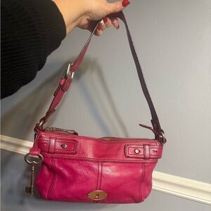 Fossil Pink Leather Shoulder Bag with Key Charm
