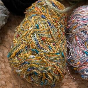 Assorted yarn bundle including merino wool and very thin variegated thread yarn