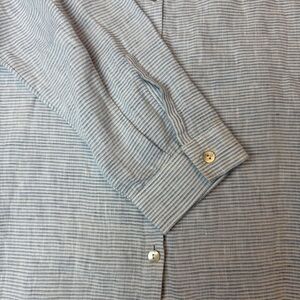 This J Jill love linen, blue and white striped 100% linen side tie tunic long sleeve top has side tie closures, bust darts, and Agoya shell buttons. The hem line is slightly longer in the back… light weight and versatile. This classic top would be a wonderful addition to your year round wardrobe. New with tags. The measurements are pit to pit 21” length 29” length in back 30”, sleeve 24 1/4 “ Retail $89