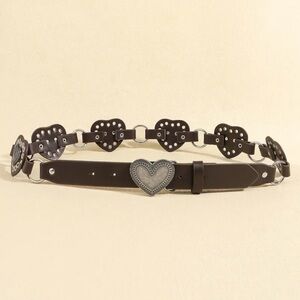 Stylish black belt featuring heart-shaped designs with silver accents. Perfect for adding a unique touch to any outfit.