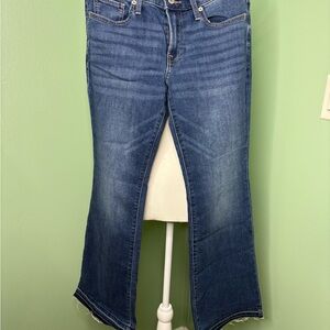 Stylish dark blue flare jeans. Comfortable fit with a trendy wide leg design.waist 30,length 38