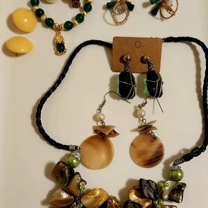 Green And Yellow Vintage/Shells Jewelry Lot