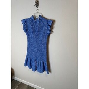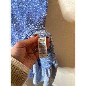 French Connection Smocked Ruffle Dress Blue White Floral Print XS