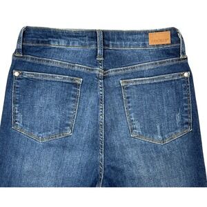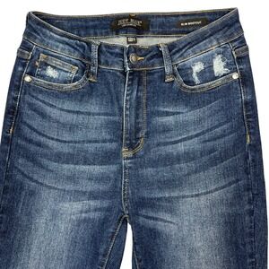 Judy Blue Slim Bootcut Jeans Dark Wash Split Hem Distressed Stretch Denim Western