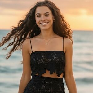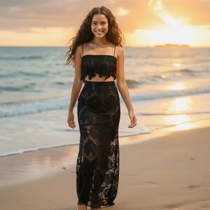 NWT Rumer Revolve Sexy Tropez Black Lace Beach Maxi Skirt Crop Top Size Small