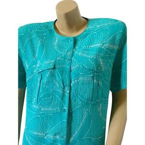 Liz Claiborne Collection Womens Size 4 Teal Button Front Blouse Short Sleeve