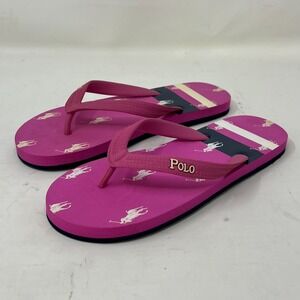 Polo Ralph Lauren Unisex Junior Flip Flop Pink/Ivory Pony Logo US Size 5 VTG NEW