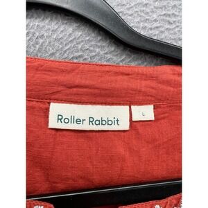 Roller Rabbit Dress Womens Sz L Orange Tiered Embroidered Midi