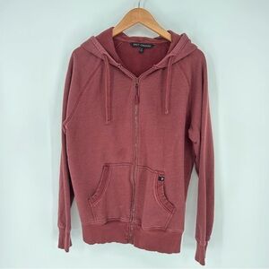 Comfortable PACT Organic hoodie in a soft pink color. Features a full zip and front pockets. Size Junior Medium.
